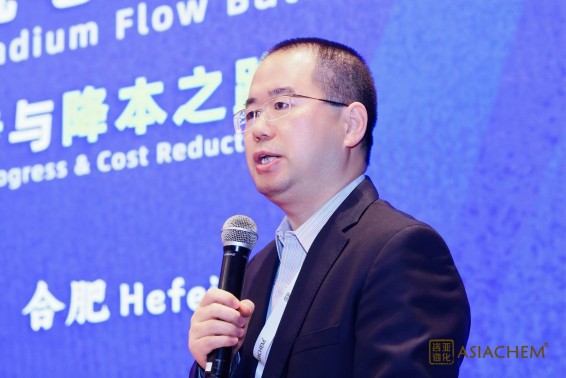 浙江星辰新能科技有限公司副总裁吴星明作《运营视角下的全钒液流储能发展路径》报告。介绍了行业现状、公司概况、星辰交易型智慧混储电站等内容。星辰42kW及62.5kW电堆均通过第三方权威检测,42kW电堆在电流密度160mA/cm²的情况下能量效率高达83.42%;星辰交易型智慧混储电站发掘独立储能的商业价值,创新运营模式释放资产潜力,多元收益渠道夯实商业基础,从被动满足并网要求的“成本项目”变成主动创造收入的“价值资产”;通过将两种或多种储能技术配合,可以实现优势互补,另辟蹊径实现高性能+长寿命+低成本的最终目标。